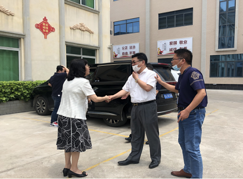 2020年5月8日下午,四会市副市长陈军忠、南江管委会主任陈陆根等领导带领陪同广东省工业新材料协会常务副会长兼秘书长贾锐、广东省产业园区协会常务副会长兼秘书长田虹一行5人,就进一步推动南江工业园产业转型升级工作,实现园区高质量发展,莅临赛博体育官网进行实地调研。广东亚太公司董事长朱增余热情接待。