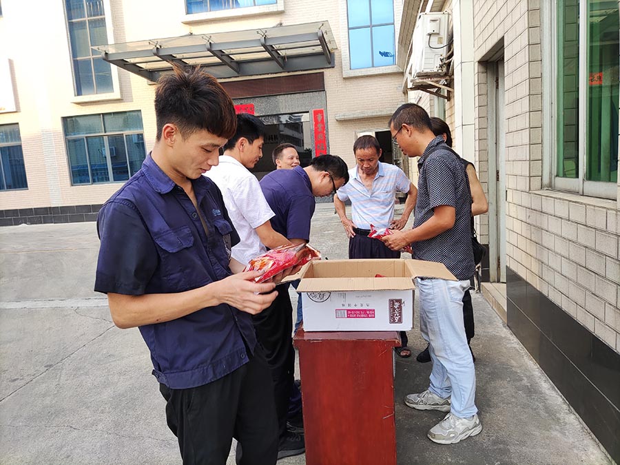 又是一年端午至,又是一个粽叶飘香的时候。值此传统端午节到来之际,公司董事长为表达对全体员工的敬意和关怀,安排工会委员会为员工送上精美粽子,并代表公司向员工家属致以节日真诚的祝福。祝愿所有员工及家属端午安康!同时,要求每一位员工在端午放假期间严格遵守广东省、肇庆市两级政府疫情防控指挥部的要求,无必要不外出、不聚集、戴口罩、勤洗手认真做好安全防护。接过公司发放的端午礼物,每一位员工都能感受到这是来自领导的殷切关怀和高度重视!心里满满的全是感动!每一位员工脸上洋溢着节日的喜悦笑容。