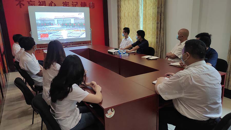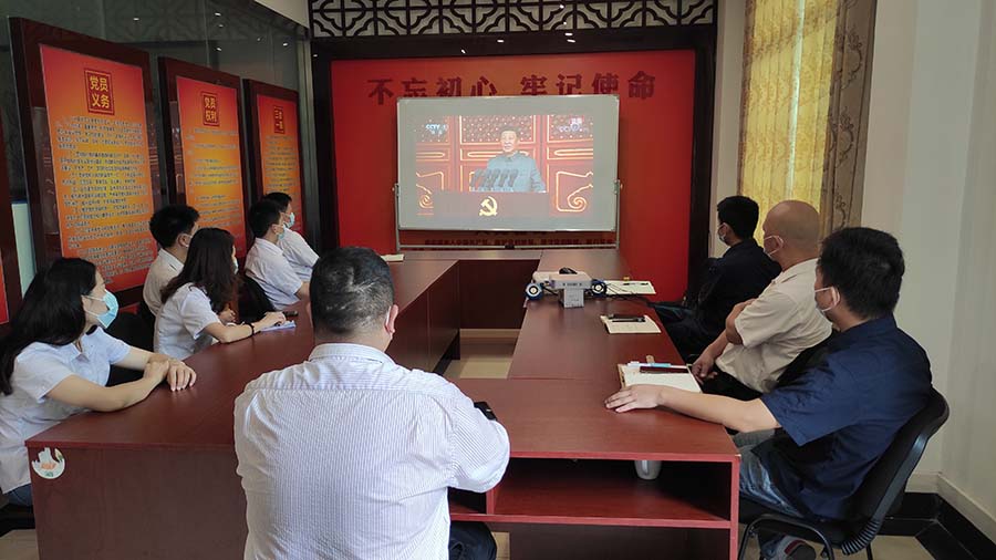 百年征程波澜壮阔,百年初心历久弥坚。7月1日上午,庆祝中国共产党成立100周年大会在北京天安门广场隆重举行。中共中央总书记、国家主席、中央军委主席习近平发表重要讲话。赛博体育官网党支部组织全体党员、入党积极分子、部分中层以上管理干部在支部初心堂,认真收听收看现场直播。庆祝大会上,习近平代表党和人民庄严宣告,经过全党全国各族人民持续奋斗,我们实现了第一个百年奋斗目标,在中华大地上全面建成了小康社会,历史性地解决了绝对贫困问题,正在意气风发向着全面建成社会主义现代化强国的第二个百年奋斗目标迈进。这是中华民族的伟大光荣,这是中国人民的伟大光荣,这是中国共产党的伟大光荣。习近平讲话结束时,全场起立,现场响起长时间热烈掌声。