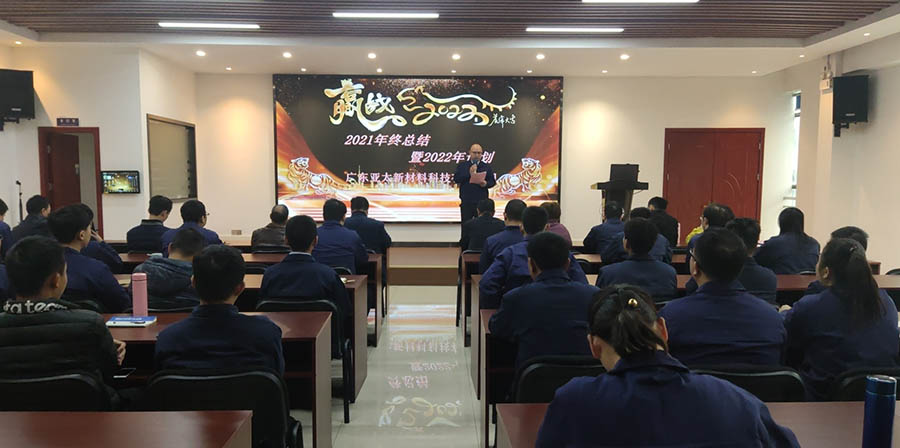 回顾2021年金属、复合材料取得的辉煌成绩,特别是金属材料新开发客户15家,年销售增长20%以上;复合材料产业量产3个项目落地;亚太公司增资扩产用地得到及时解决,为后续的合约定订单排出了困扰。表扬了跨部门协商完成了金叶投资、粤科投资的尽职调查,获得一致好评等等取得的成果;对2022年度公司战略发展目标提出新的要求和新的希望,他说:各位同仁!2022年是公司五年战略规划开局之年,也是“实现新突破、进入快车道、迈向新时代”极为关键的一年,任务十分艰巨,全员要牢记“责任与担当,时间与效率”和“我行、我能”、“不怕苦不怕累”的拼搏精神,树立“不为困难找理由,只为目标寻路径”的责任感,确保“问题困难我克服”,争做“创新亚太、腾飞亚太”的实践者,为实现我们亚太人的利益共同体的总目标而努力奋斗。
