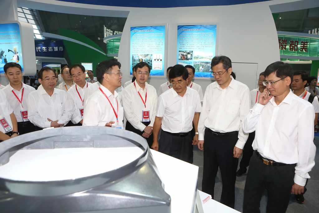 贵州省委常委、副省长慕德贵(前右三),广西区党委常委、常务副主席蓝天立(前右一),广东省副省长何忠友(前右二),肇庆市市长陈旭东(前右四)参观我司展位。