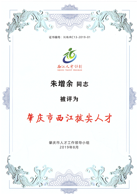 热烈祝贺亚太公司董事长朱增余入选“肇庆市第十三批西江拔尖人才”阅读次数:941 | 发布日期:2019/12/19 | 作者: | 来源: