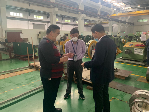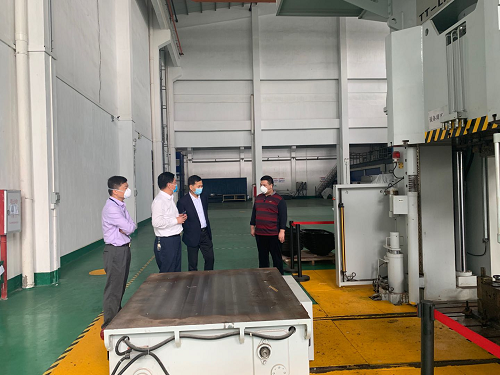 2020年2月25日上午,四会市人民政府副市长陈军忠在南江管委会主任何伟光的陪同下,到赛博体育官网视察复产工作,董事长朱增余、副总经理罗国伟进行了热情接待。