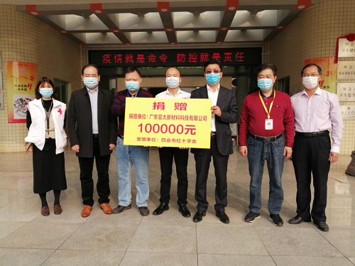 2月27日,赛博体育官网向四会市红十字捐赠10万元,定向支助四会市中医院抗击新冠病毒肺炎疫情,鼓励他们为全市的防疫救助作出的突出贡献。董事长朱增余以个人名义向四会市首例感染者确诊医生李军捐赠1万元,感谢他为我市疫情输入传播有效防控阻隔起的突出作用。市人大常委会副主任胡四弟、市卫生健康局局长、党组书记赖军伟、市红十字会常务副会长江卓辉及市中医院院长黄传成出席了朱增余董事长的捐赠仪式。